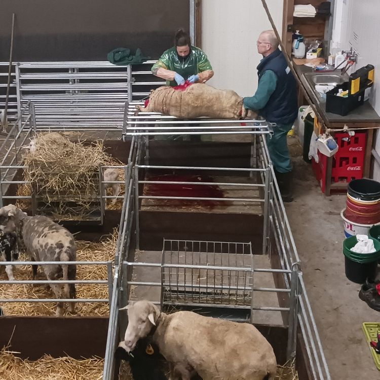 Drie weken geleden begon het al bij een van onze ooien. Ze had een prolaps van de schedewand, in vakjargon ook wel een ‘lijfbieder’ genoemd. Het ziet eruit als een rode ballon die naar buiten hangt. Het grote gevaar is dat de ooi blijft persen, wat de situatie alleen maar verergert. De dierenarts heeft de schede terug op zijn plek geduwd en vastgezet met een lintje. Vanaf dat moment was het 24/7 opletten: zodra de bevalling begint, moet dat lintje eruit, anders kunnen de lammeren niet geboren worden.