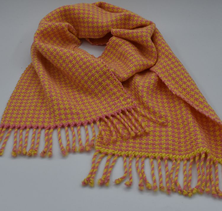 Dit klassieke pied-de-poule patroon komt prachtig uit in de merinowol en leent zich er ook uitstekend voor om breder geweven te worden, bijvoorbeeld voor een royale stola.