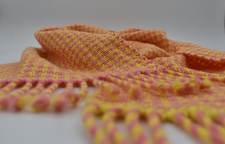 Ondanks de felle kleuren is de basis van deze sjaal heel puur en herkenbaar. Ik heb geweven met ons eigen DutchMerino® 'Joke' garen. Deze merinowol is afkomstig van onze eigen merinoschapen hier in Koewacht. Ben je benieuwd naar het verhaal achter dit garen en de bijzondere ooi waar het naar vernoemd is? Lees hier het verhaal van Joke!!