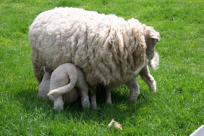 - Foto is een Romney ooi met haar 2 zogende lammeren. Dit ras hadden wij tot 2009 ook op de boerderij. Ontzettende mooie lange stapel en mooi fijn te spinnen.