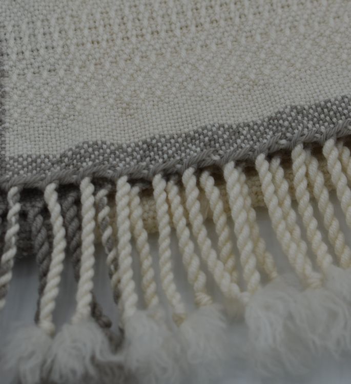 Hoewel de superwash sjaal zacht aanvoelt, zie je dat de draden veel meer 'los' naast elkaar blijven liggen. Het weefsel 'leeft' minder en wordt nooit dat mooie, gesloten en karaktervolle geheel dat je bij onze natuurlijke merinowol ziet.