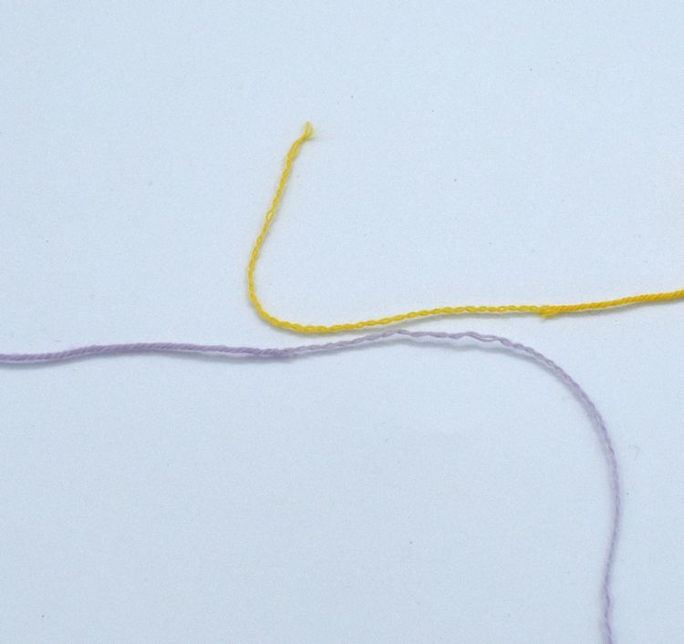 3. De nieuwe draad: Pak je nieuwe garen en splits ook hier de eerste 5 cm van de draad.