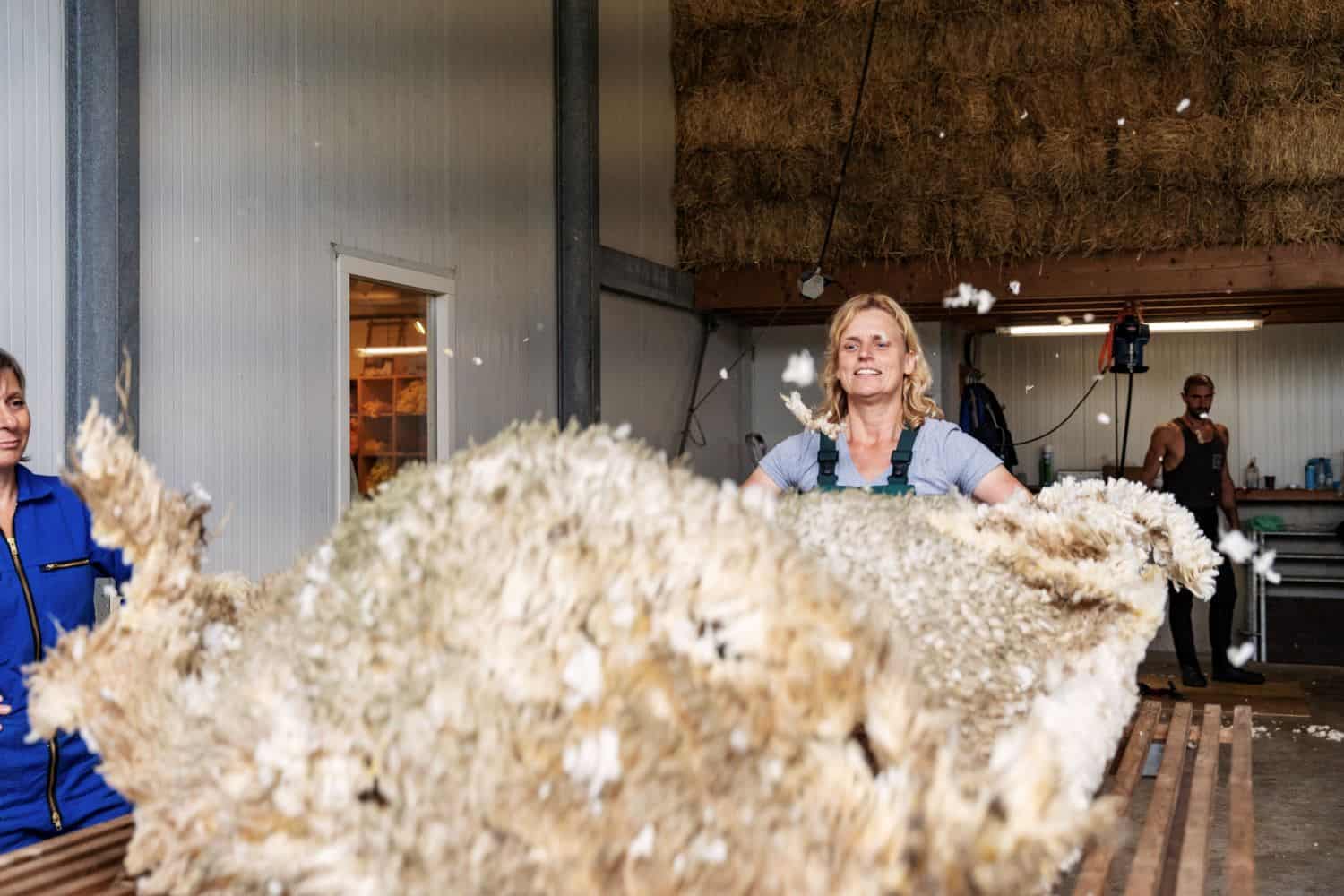 We hopen uiteraard dat we een mooi voorjaar krijgen na deze winter. Da lopen de dieren lekker veel buiten waardoor we nauwelijks hooi hebben hoeven bijvoeren. Dit vertaalt zich tzt direct in de kwaliteit: de vachten bevatten dan zeer weinig tot geen vegetatie op de rug. De meest vervuilde delen (buik, staart en achterhand) verwijderen we al tijdens het scheren.