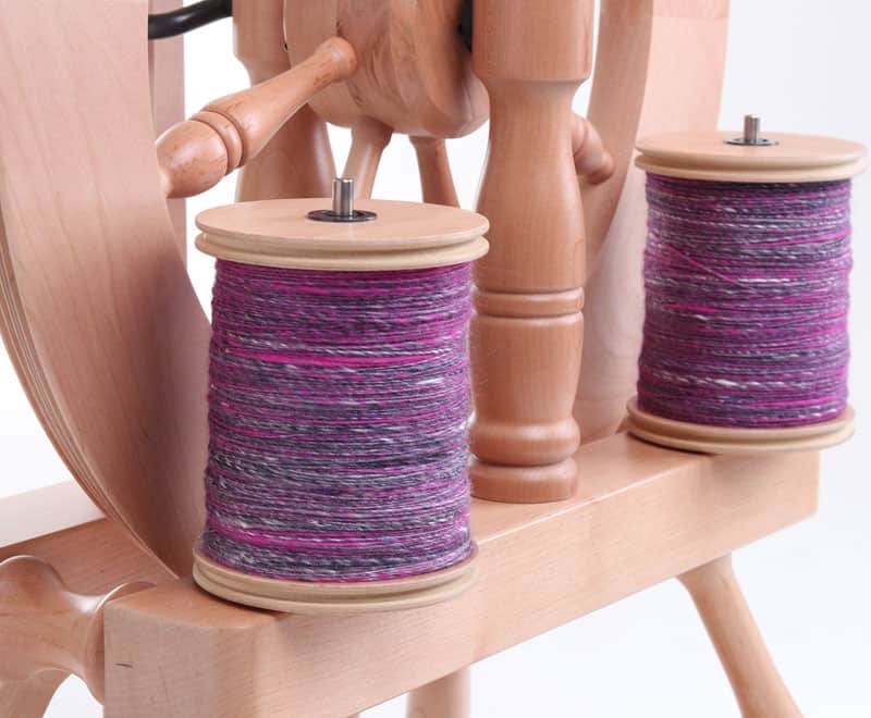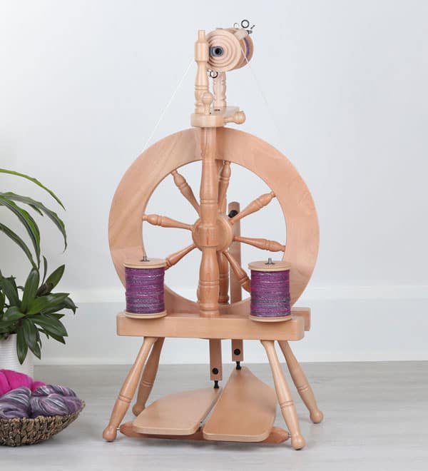 Dit compacte mooie wiel is geschikt voor fijn en medium spinnen. Het heeft 4 ratio’s en voor de bulky garens is er een optionele jumbo vlucht.